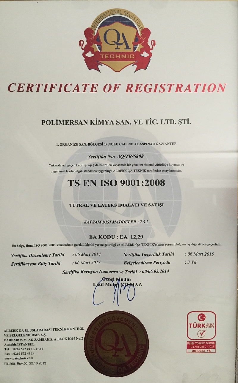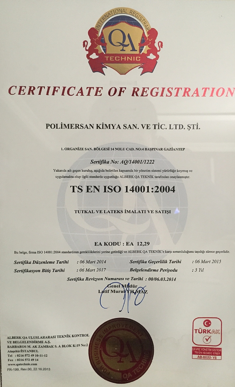 Politeks Polimer San. Tic. Ltd. Company has got the ISO 9001 and ISO 14001 quality certificates.